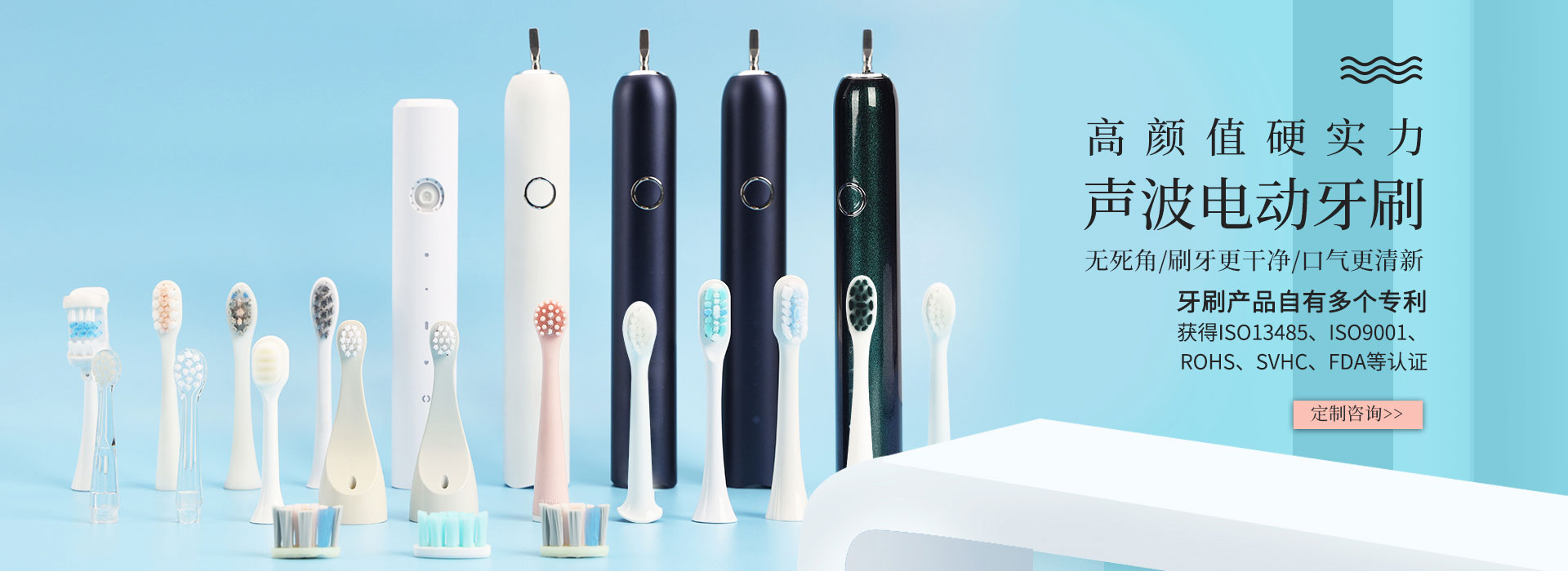 獲得ISO13485、ISO9001、ROHS、SVHC、FDA等認證;從牙刷美學、口腔清潔效果設計出發,創新科技、自主研發和提供更優秀的解決方案,給客戶帶來高品質的個人口腔健康護理產品與服務。